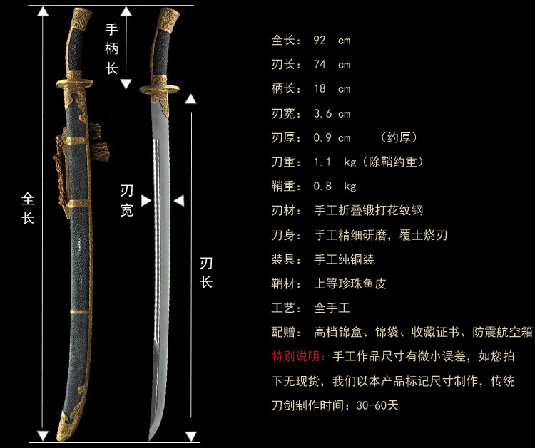 非常漂亮,拿在手里有种厚重感,剑身还细心的图了油防锈,真不错