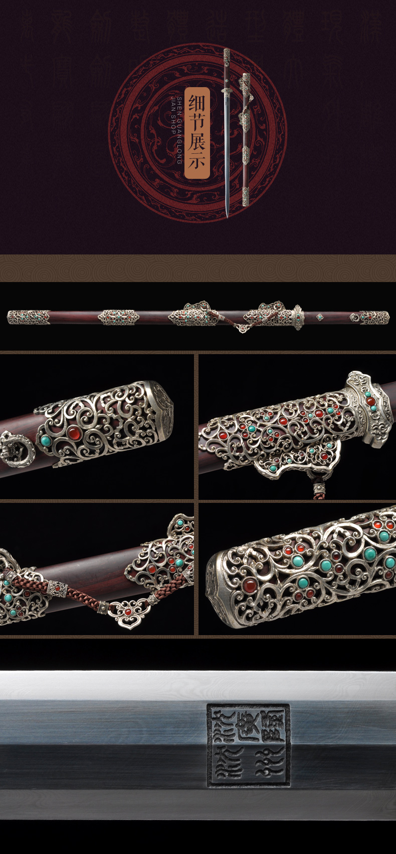 看过历史出土的唐剑图片,这把剑的装饰和那个几乎一样,真的很漂亮,这就是一把真正的唐剑。