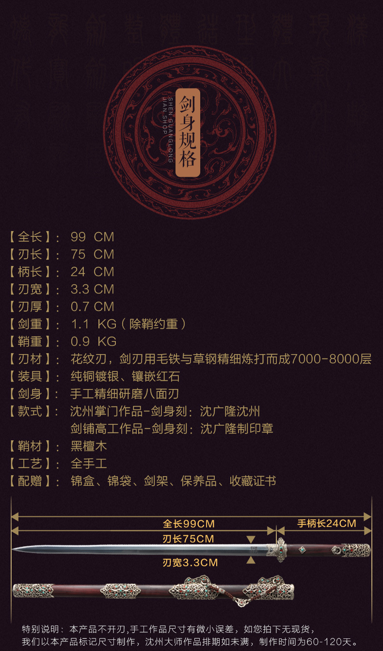 沈州大师高徒制作此款紫英唐剑售价是16800元