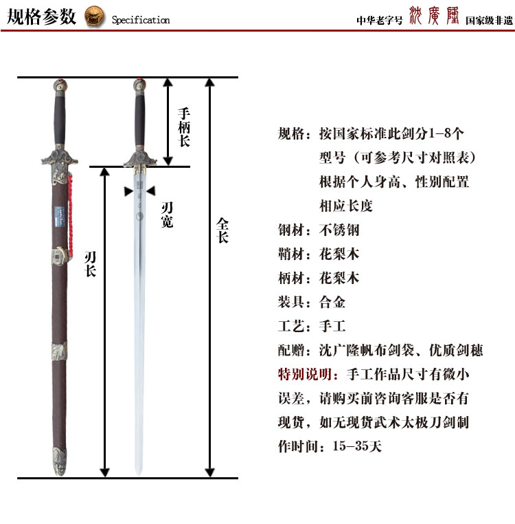 剑已收到,自用感觉舒服,剑身重量比例适中,装具稳定贴实,古朴厚重感极强,作为新手剑算是上品。好评~